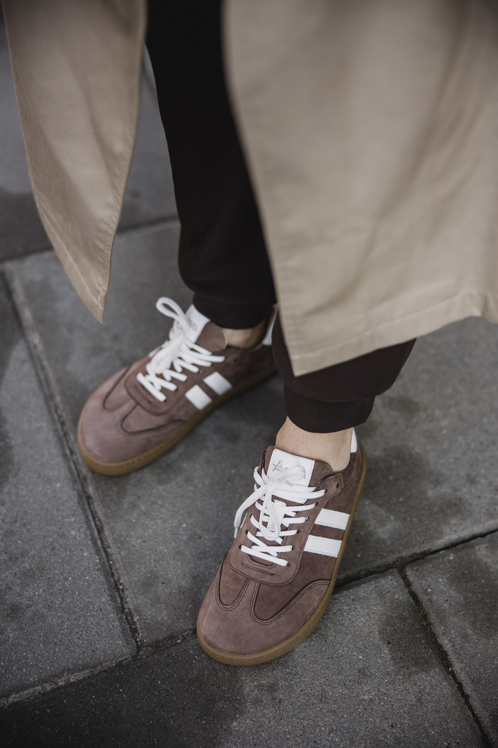 Półbuty barefoot damskie Livia w kolorze brązowego nubuku to połączenie minimalistycznego stylu i naturalnego komfortu chodzenia. Dzięki szerokiemu toe boxowi, elastycznej podeszwie i zerowemu dropowi stopa może pracować w naturalny sposób przez cały dzień.