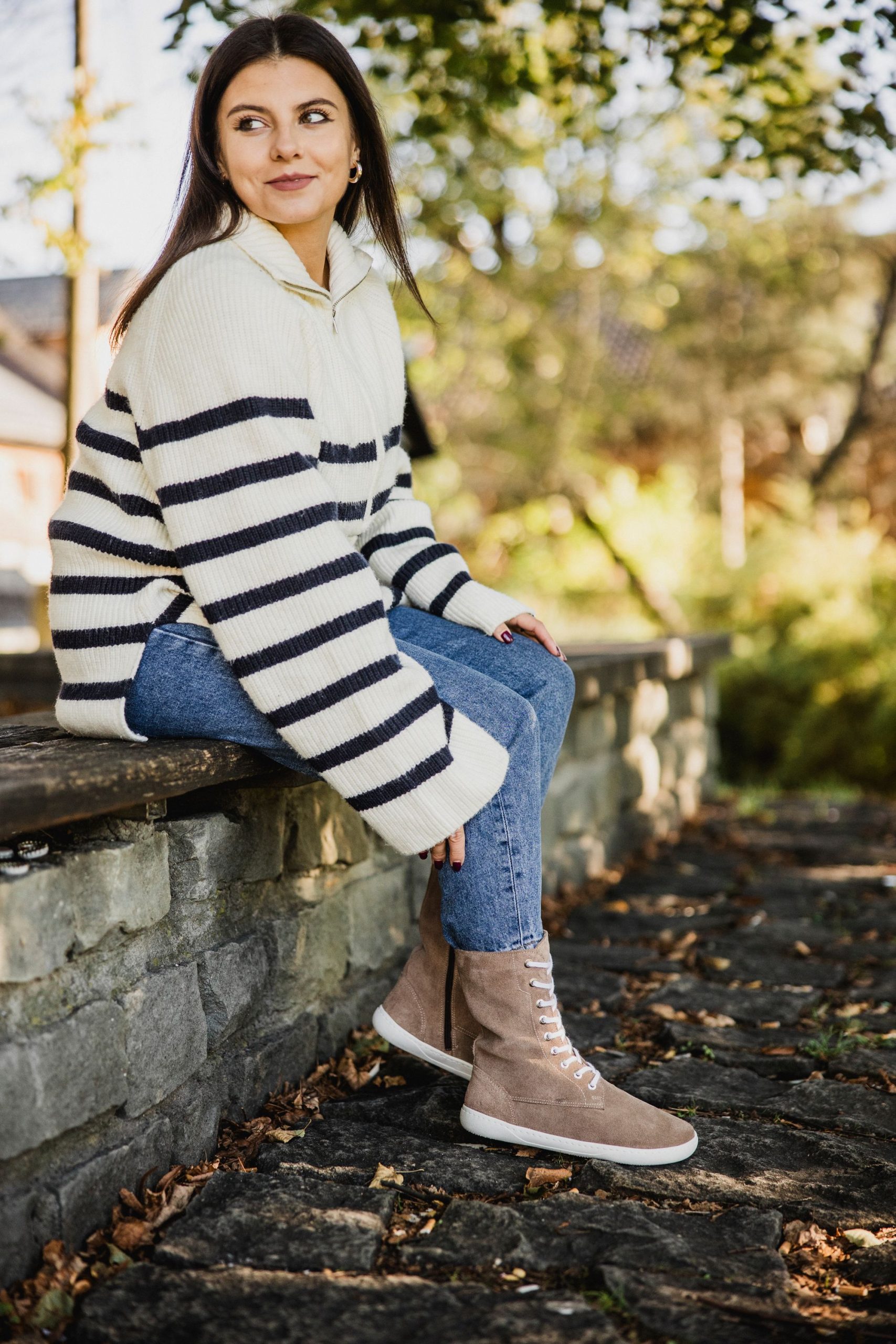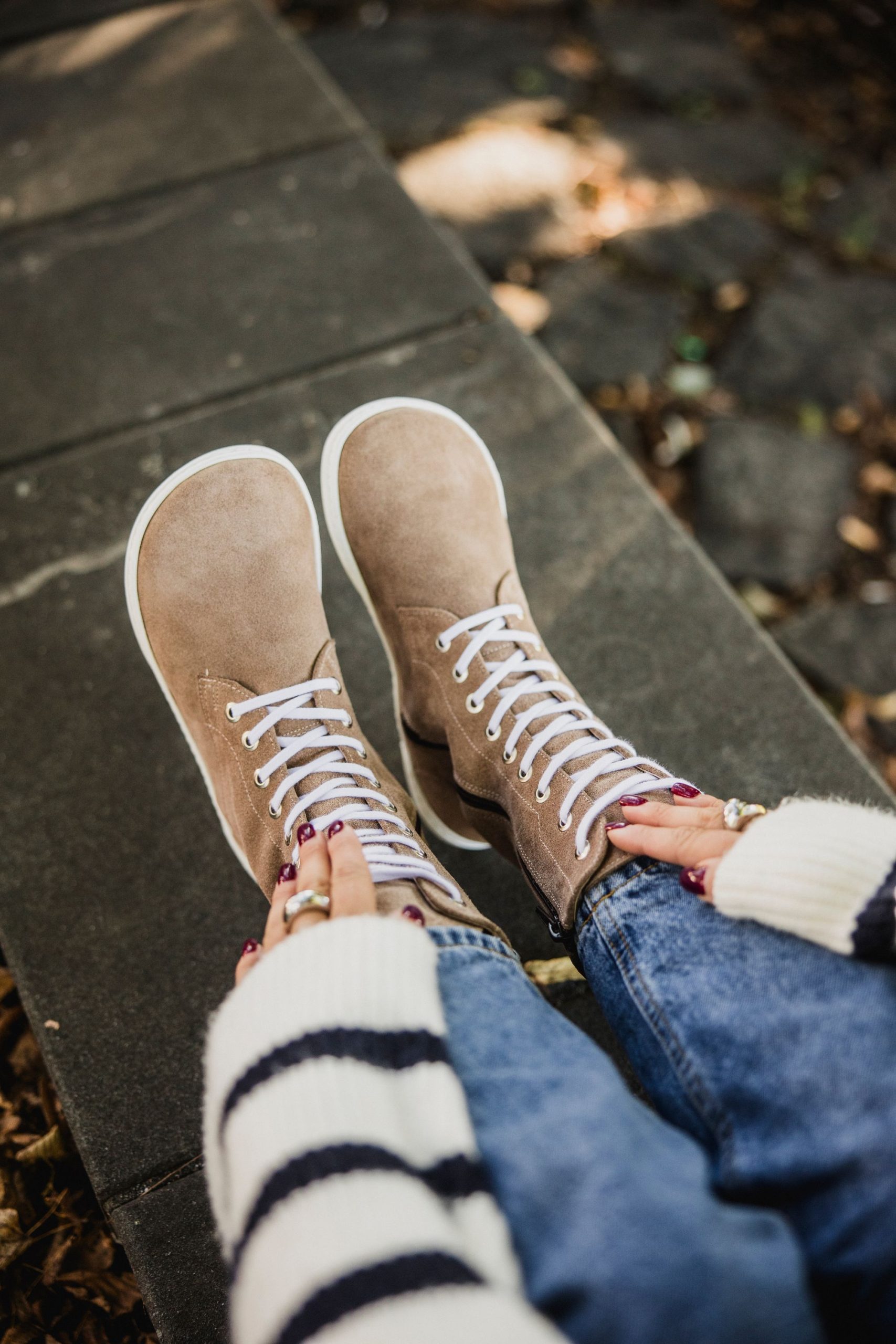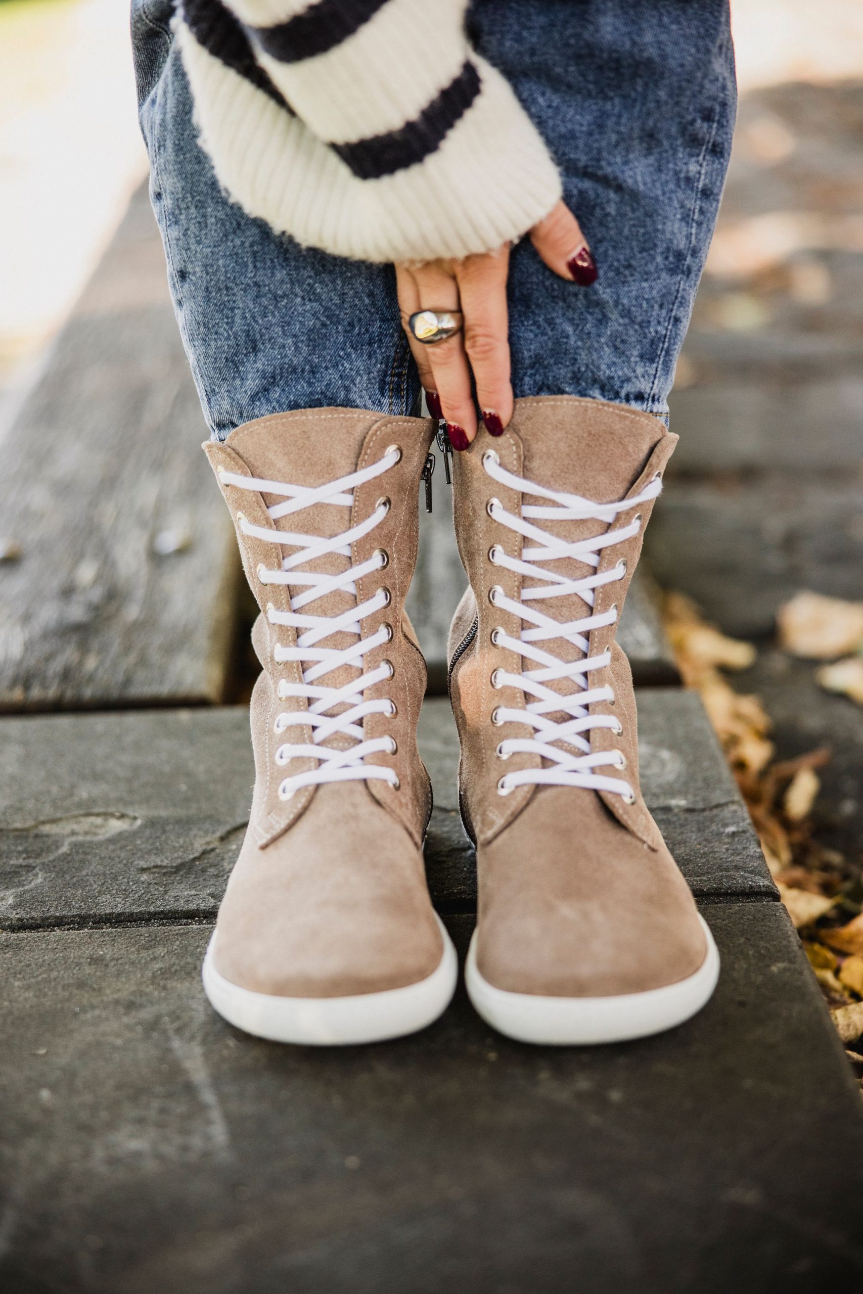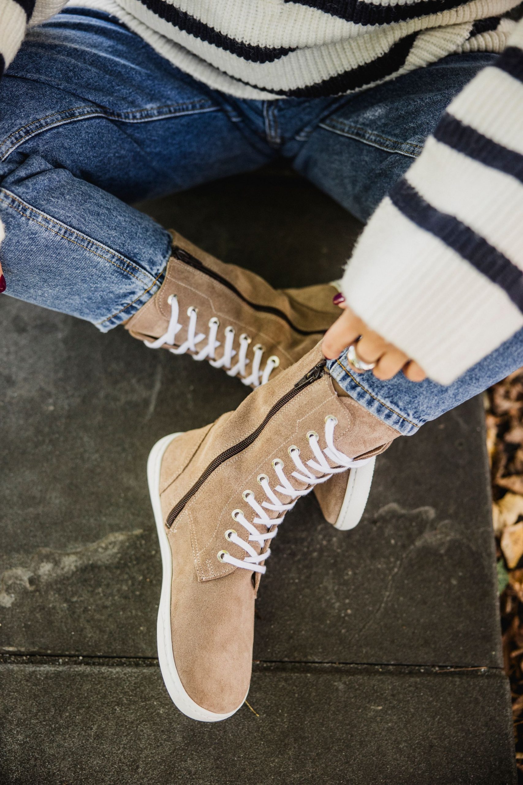 Wysokie trzewiki Barefoot świetnie sprawdzą się w wielu stylizacjach.