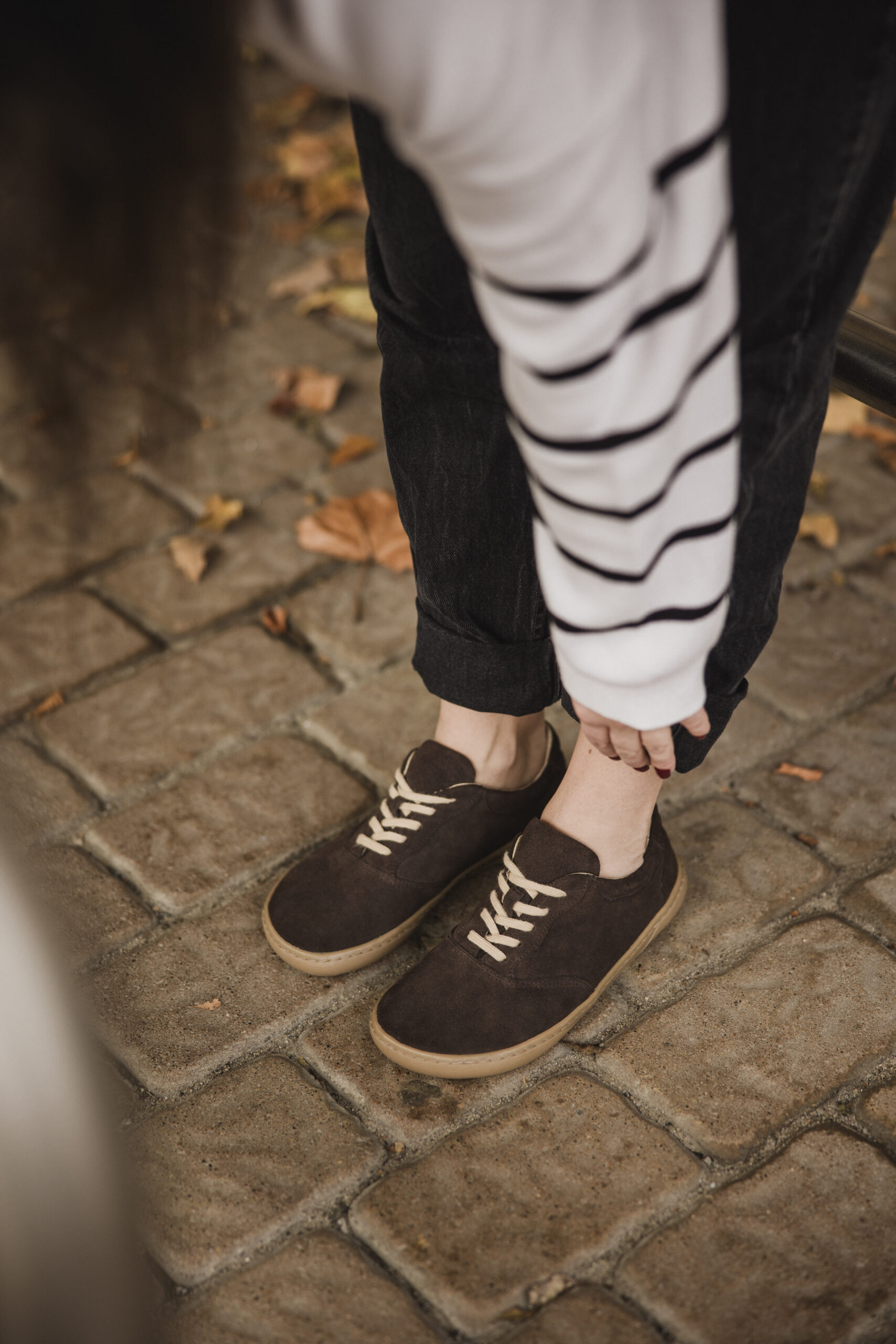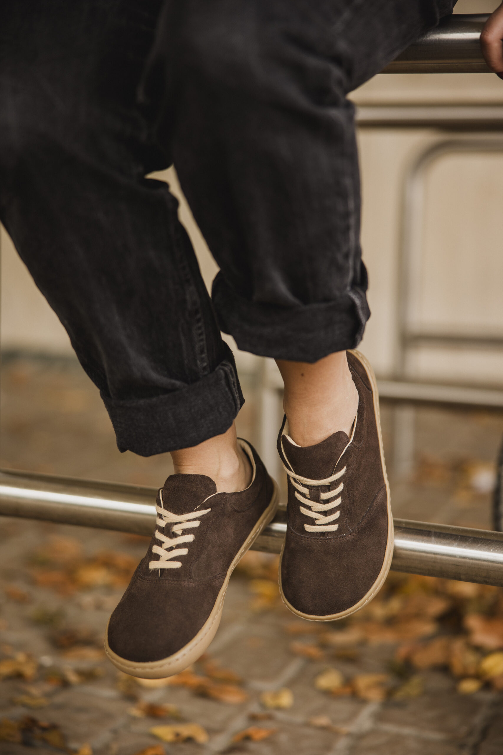 Półbuty barefoot damskie Ava – ciemny brąz welur | Apavo Barefoot