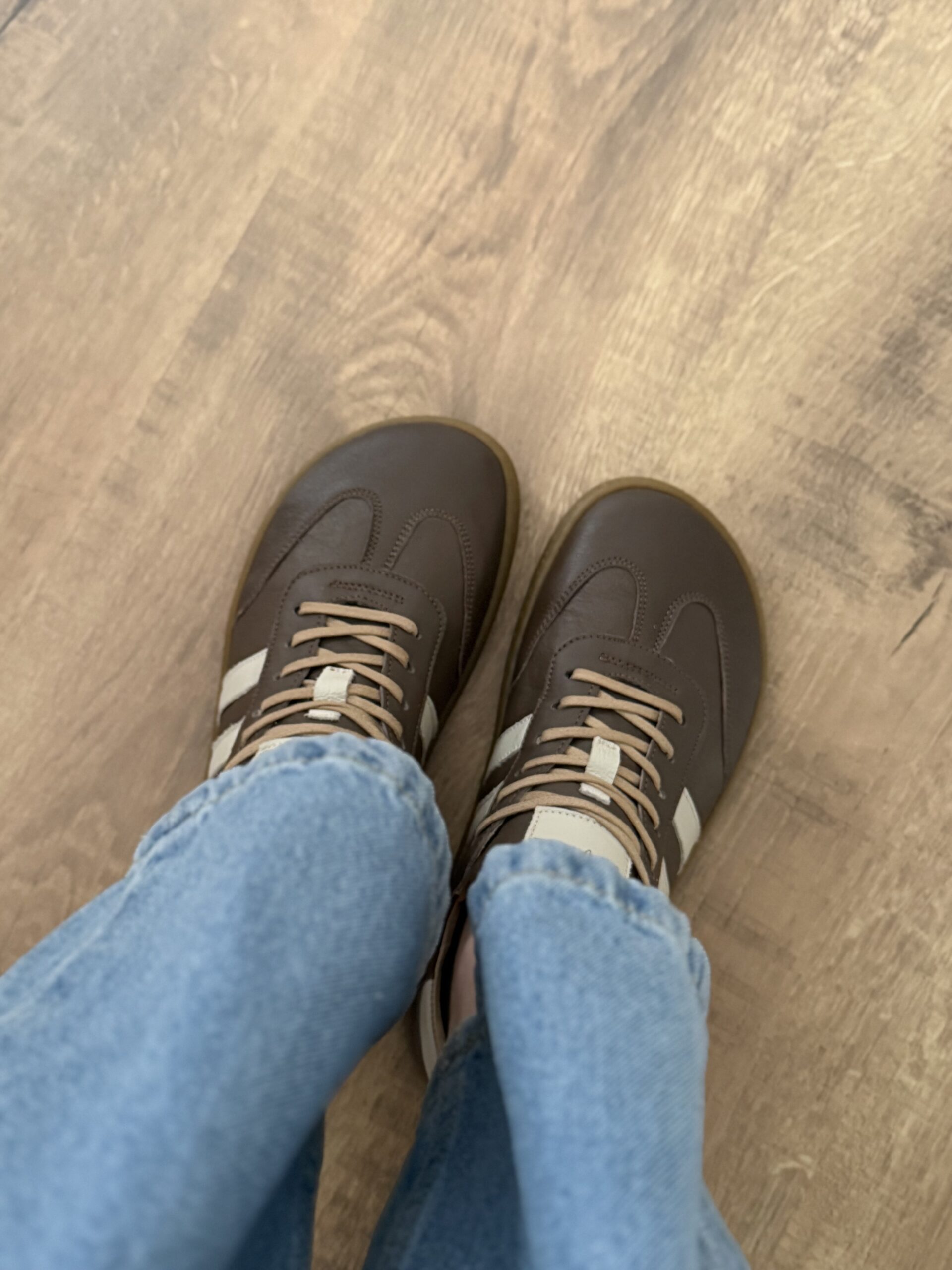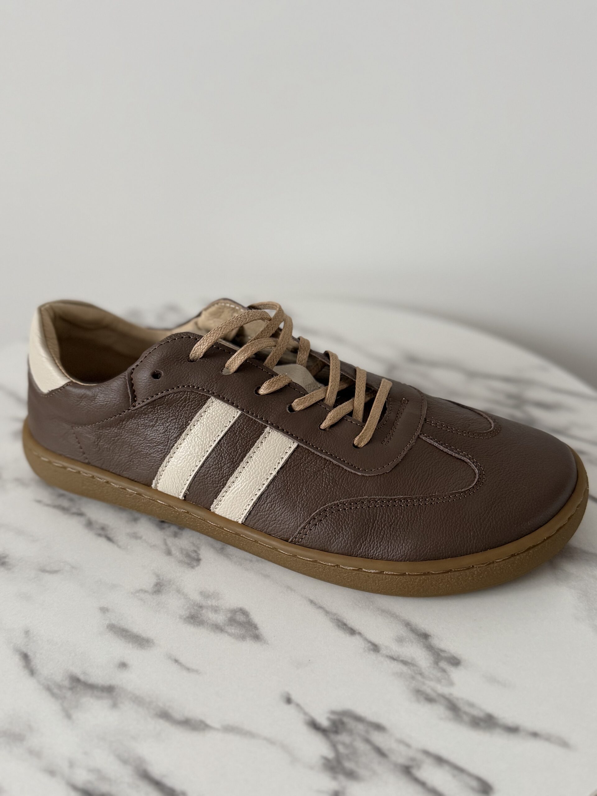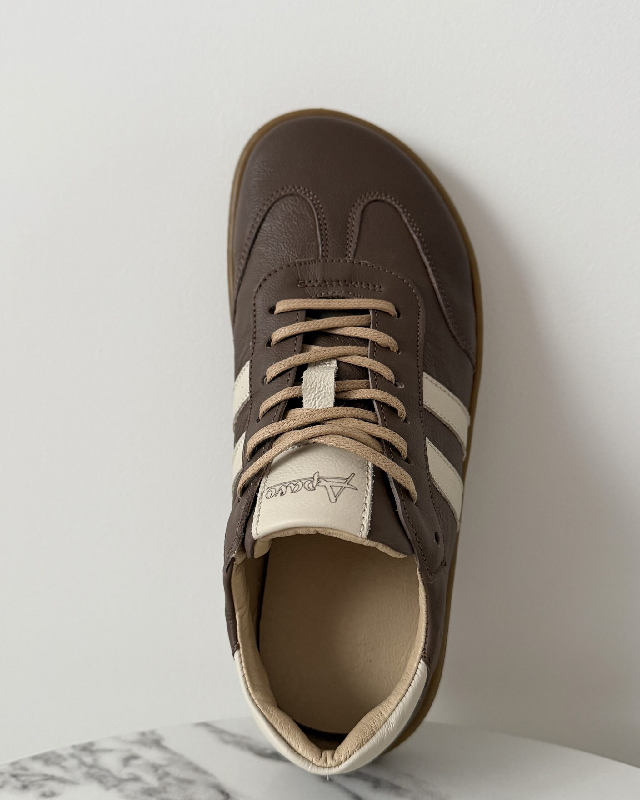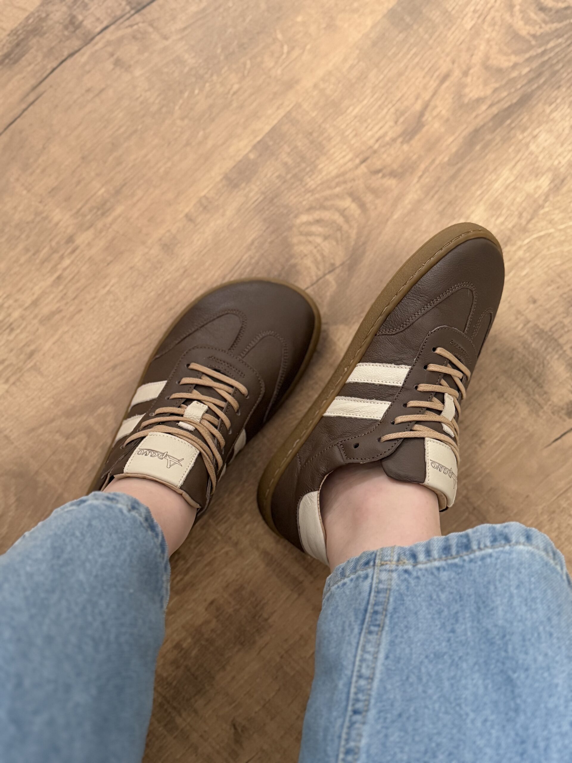 Półbuty barefoot damskie Livia w kolorze czekoladowego brązu to eleganckie sneakersy, które łączą klasyczny styl z naturalnym komfortem chodzenia. Kremowe dodatki nadają im lekkości, a konstrukcja barefoot pozwala stopie pracować swobodnie i bez ograniczeń.