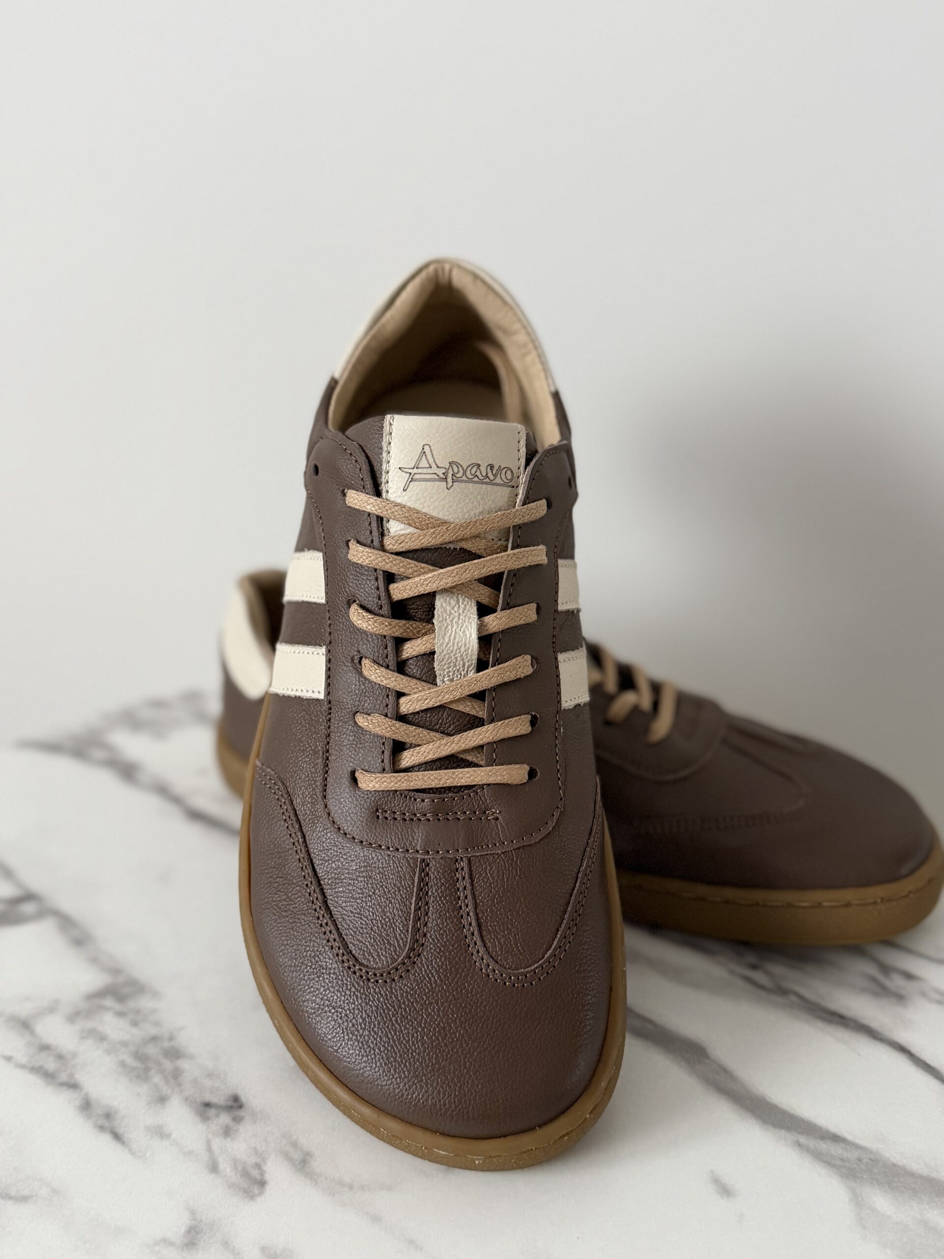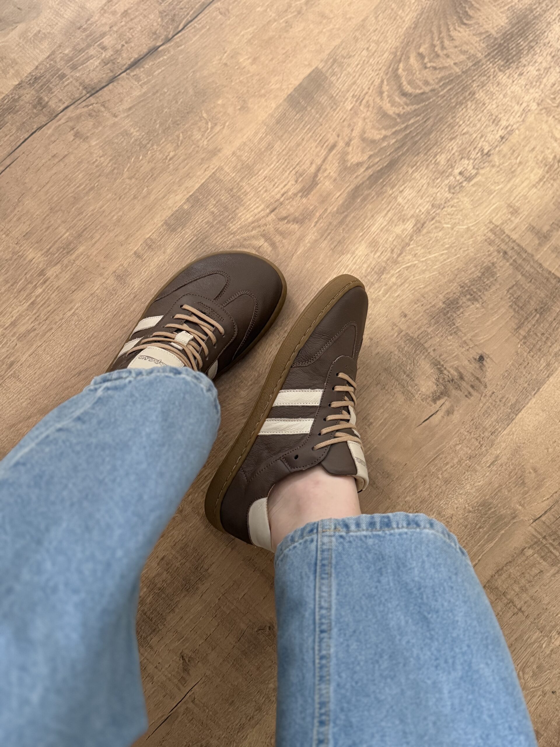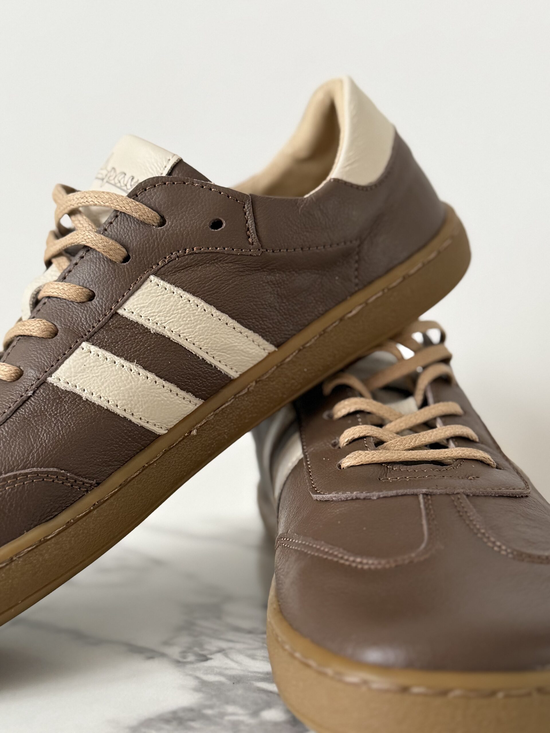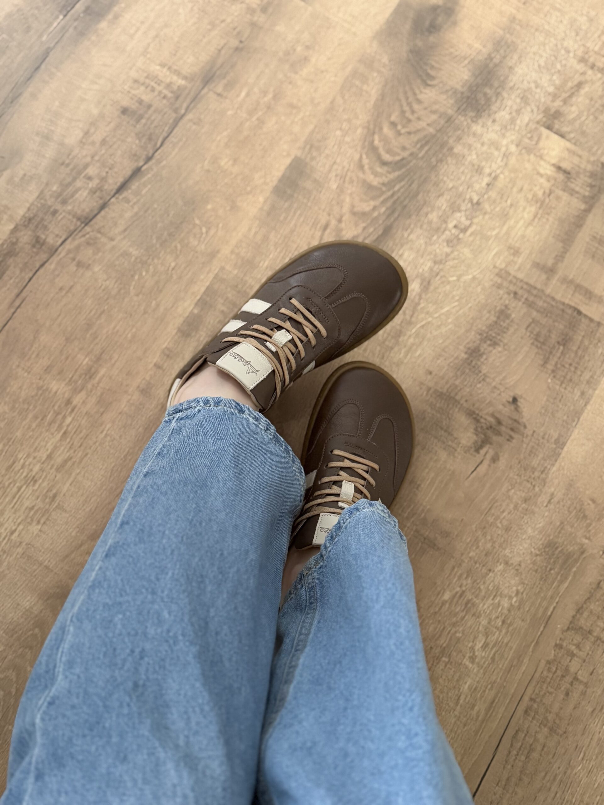 Półbuty barefoot damskie Livia w kolorze czekoladowego brązu to eleganckie sneakersy, które łączą klasyczny styl z naturalnym komfortem chodzenia. Kremowe dodatki nadają im lekkości, a konstrukcja barefoot pozwala stopie pracować swobodnie i bez ograniczeń.