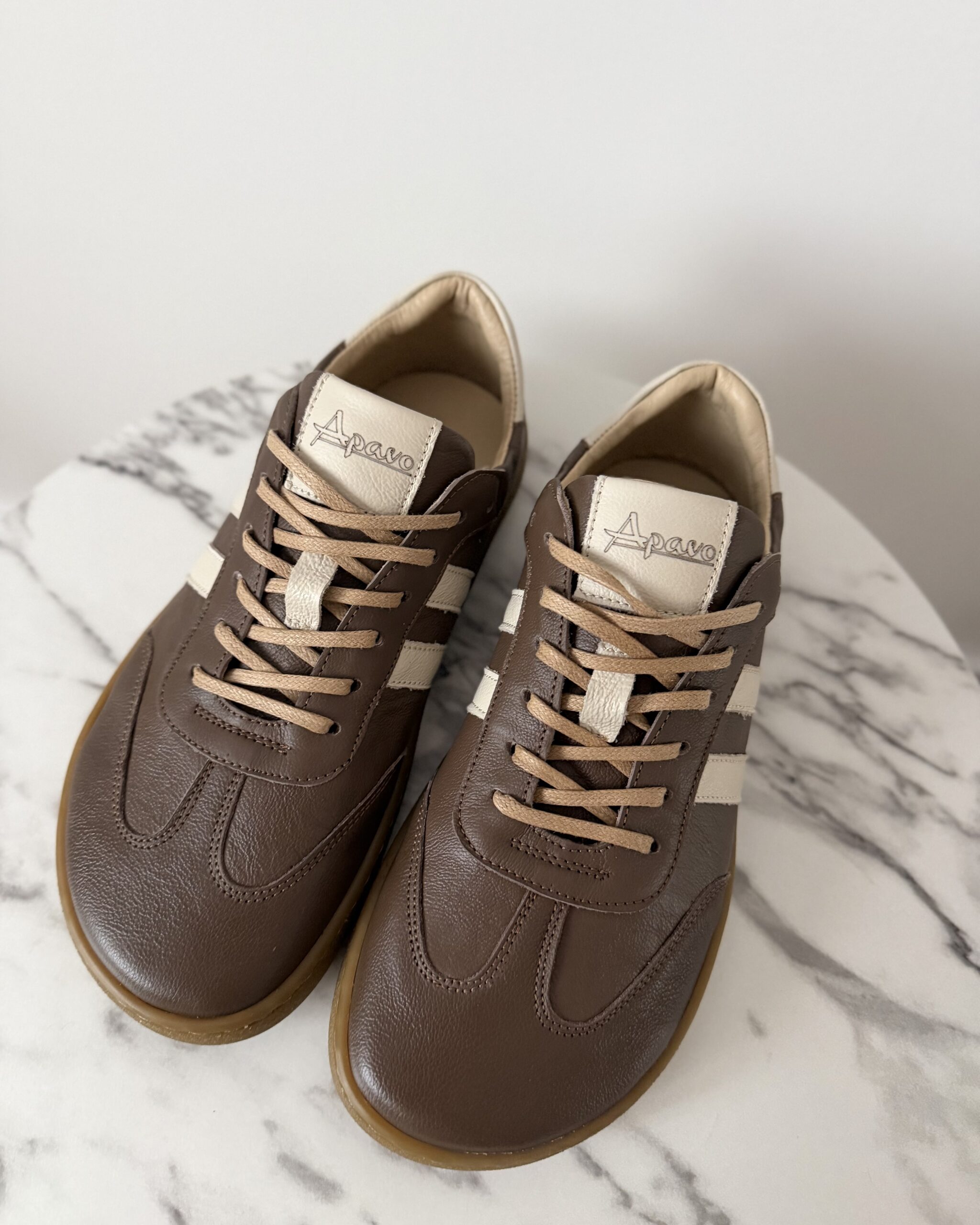 Półbuty barefoot damskie Livia – czekoladowy brąz z kremowymi dodatkami | Apavo Komfort