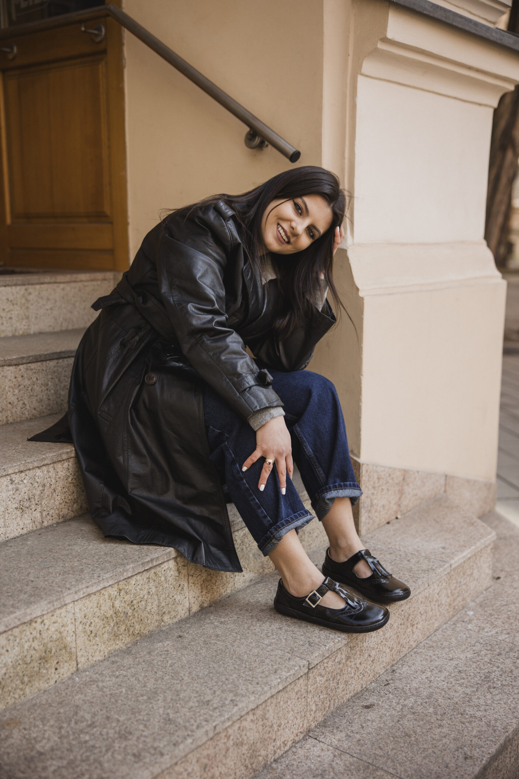 Półbuty barefoot damskie Marine to połączenie elegancji i subtelnej zabawy detalem. Lakierowany, czarny kolor, klasyczny fason T-bar oraz delikatne fredzelki na pasku nadają butom ponadczasowego charakteru, a szeroki toe box i elastyczna podeszwa zapewniają komfort barefoot przez cały dzień.