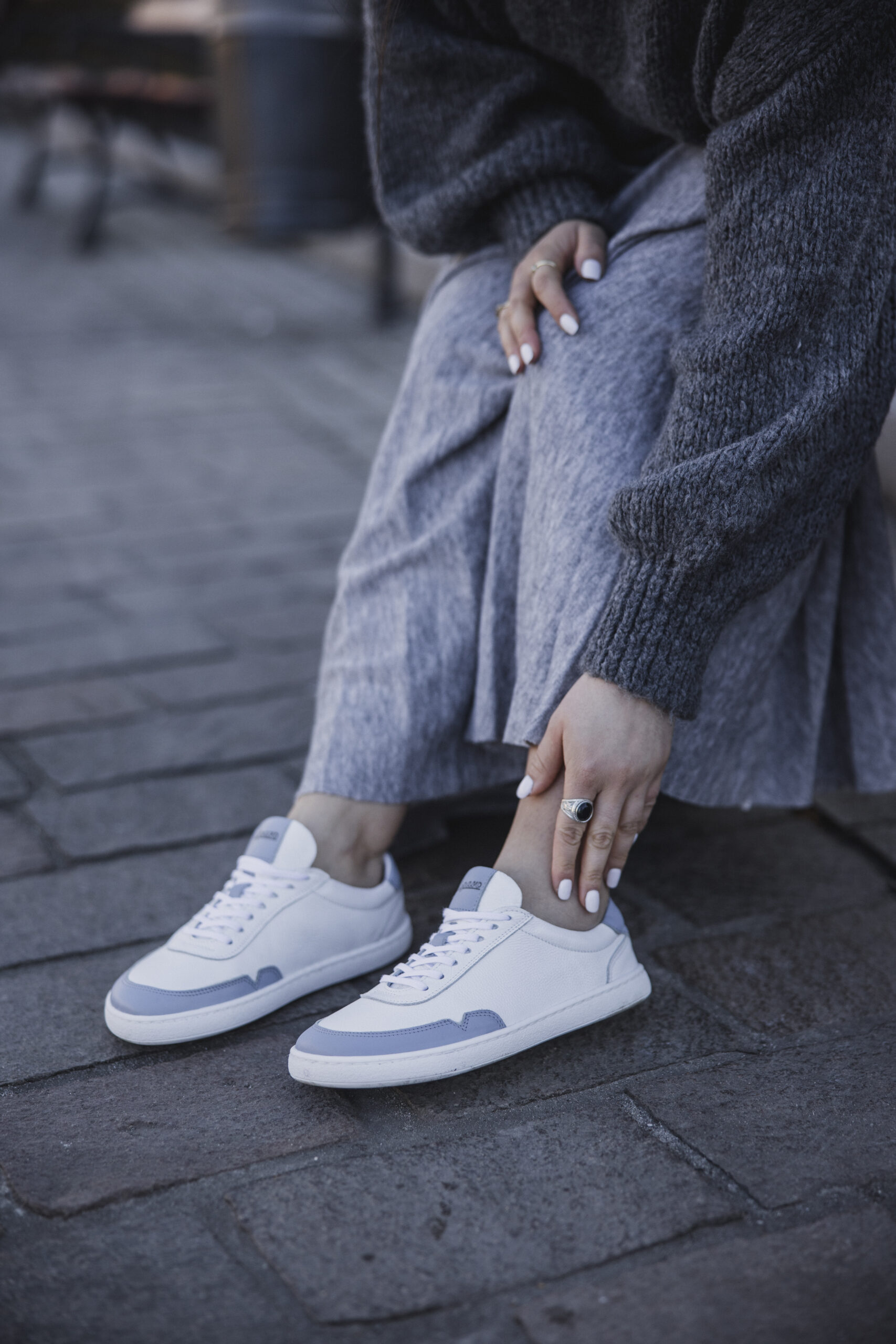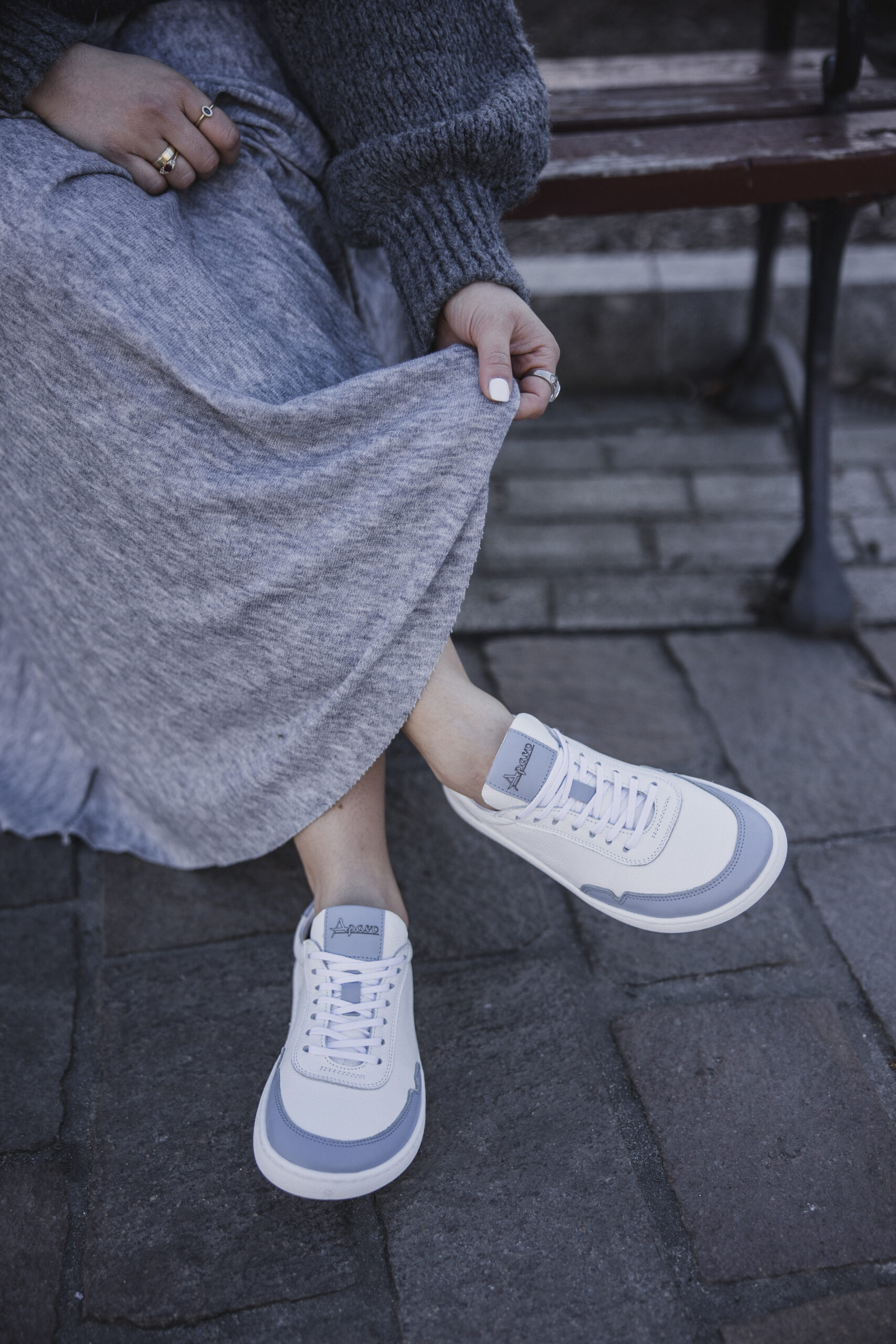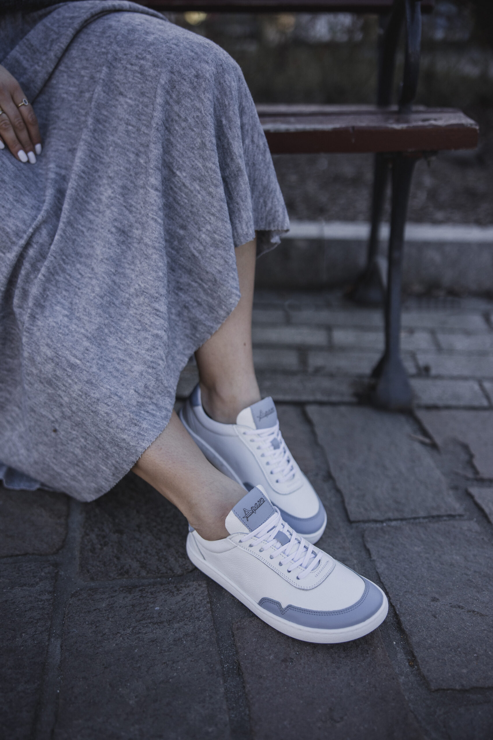 Półbuty barefoot damskie Vivi – białe sneakersy z błękitnymi dodatkami | Apavo Komfort