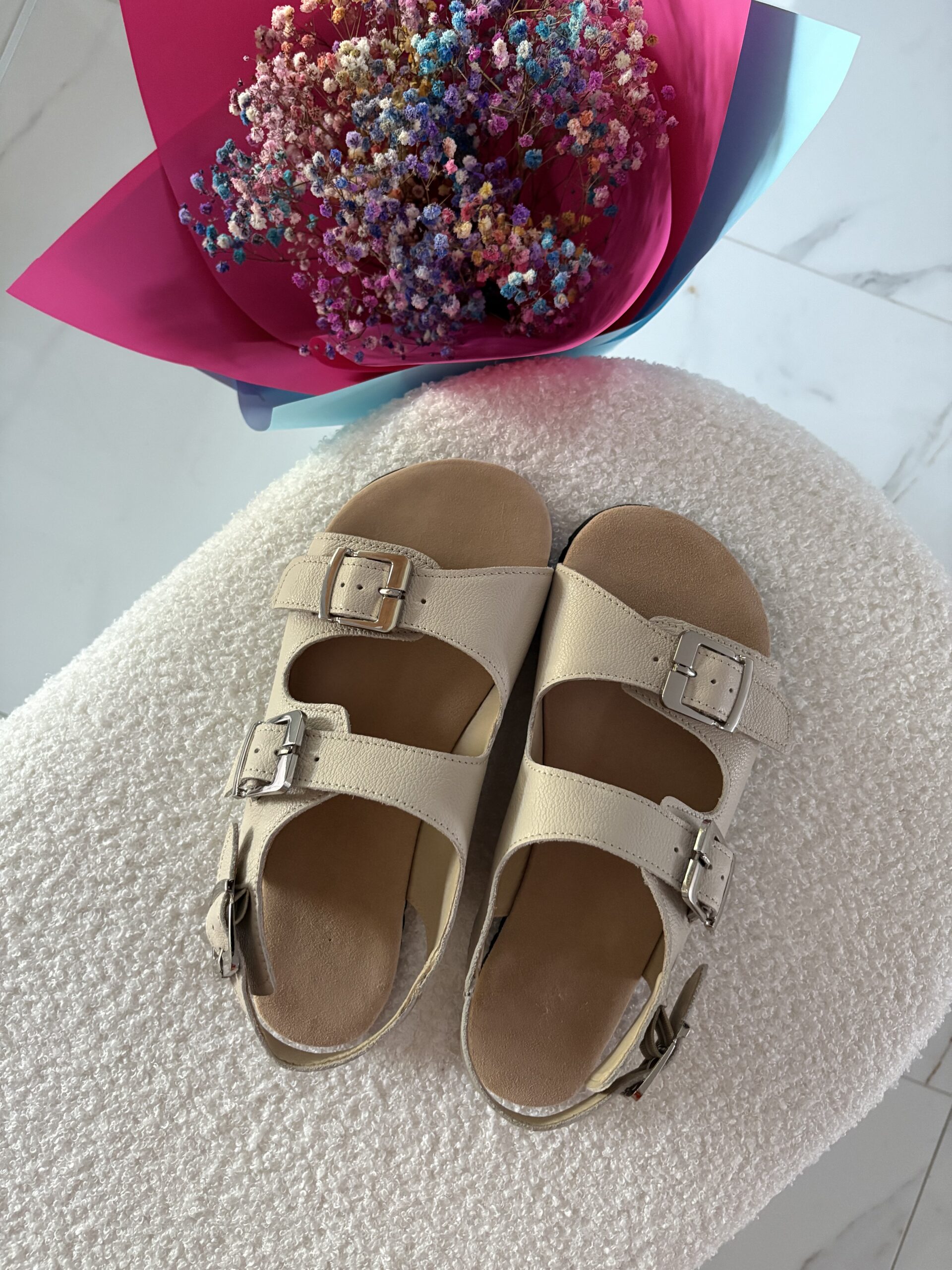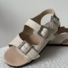 Jasny kremowy kolor nadaje sandałom eleganckiego i ponadczasowego wyglądu.