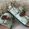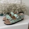 Miętowy kolor nadaje sandałom świeżości i subtelnej elegancji.