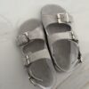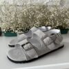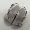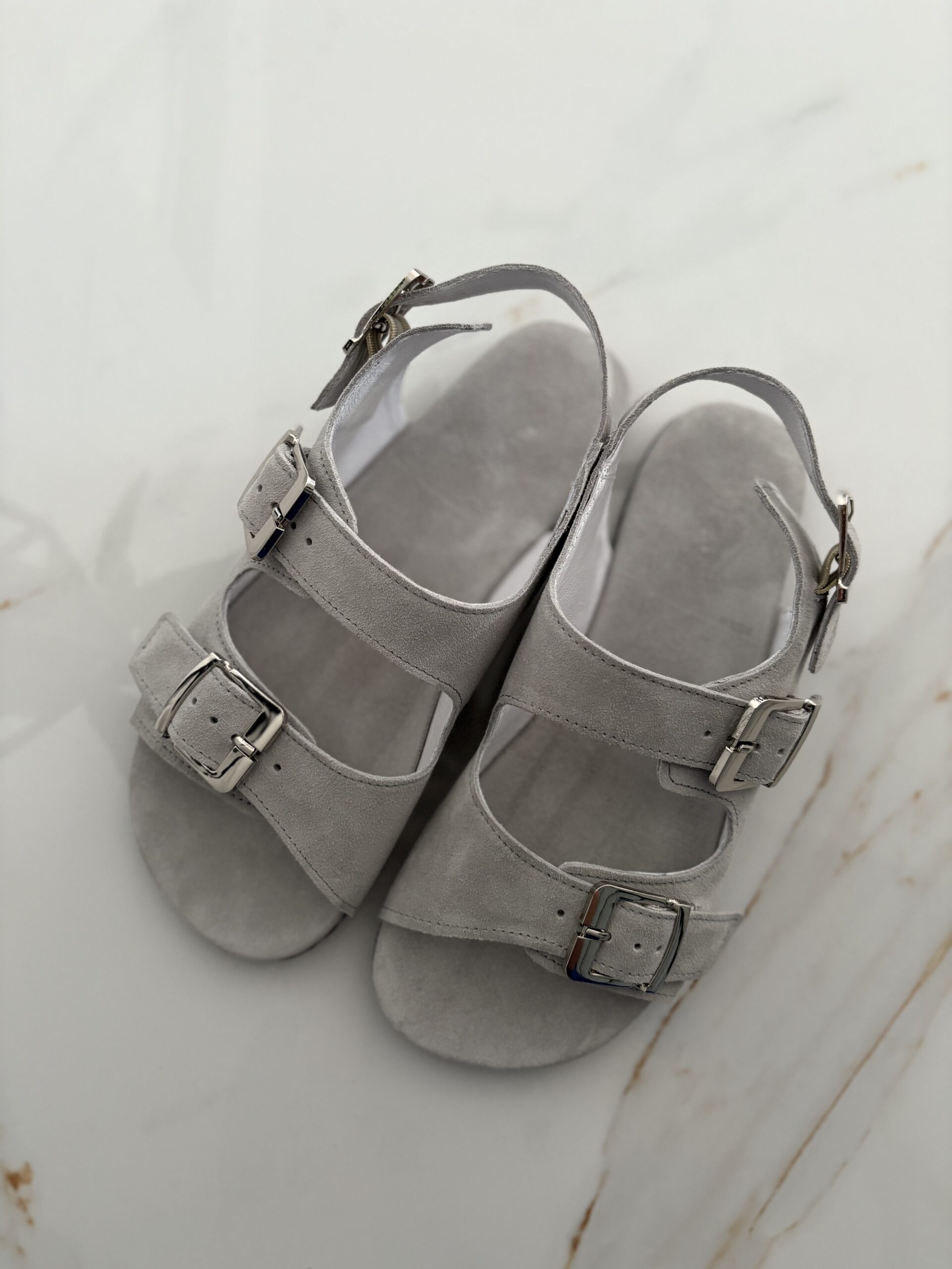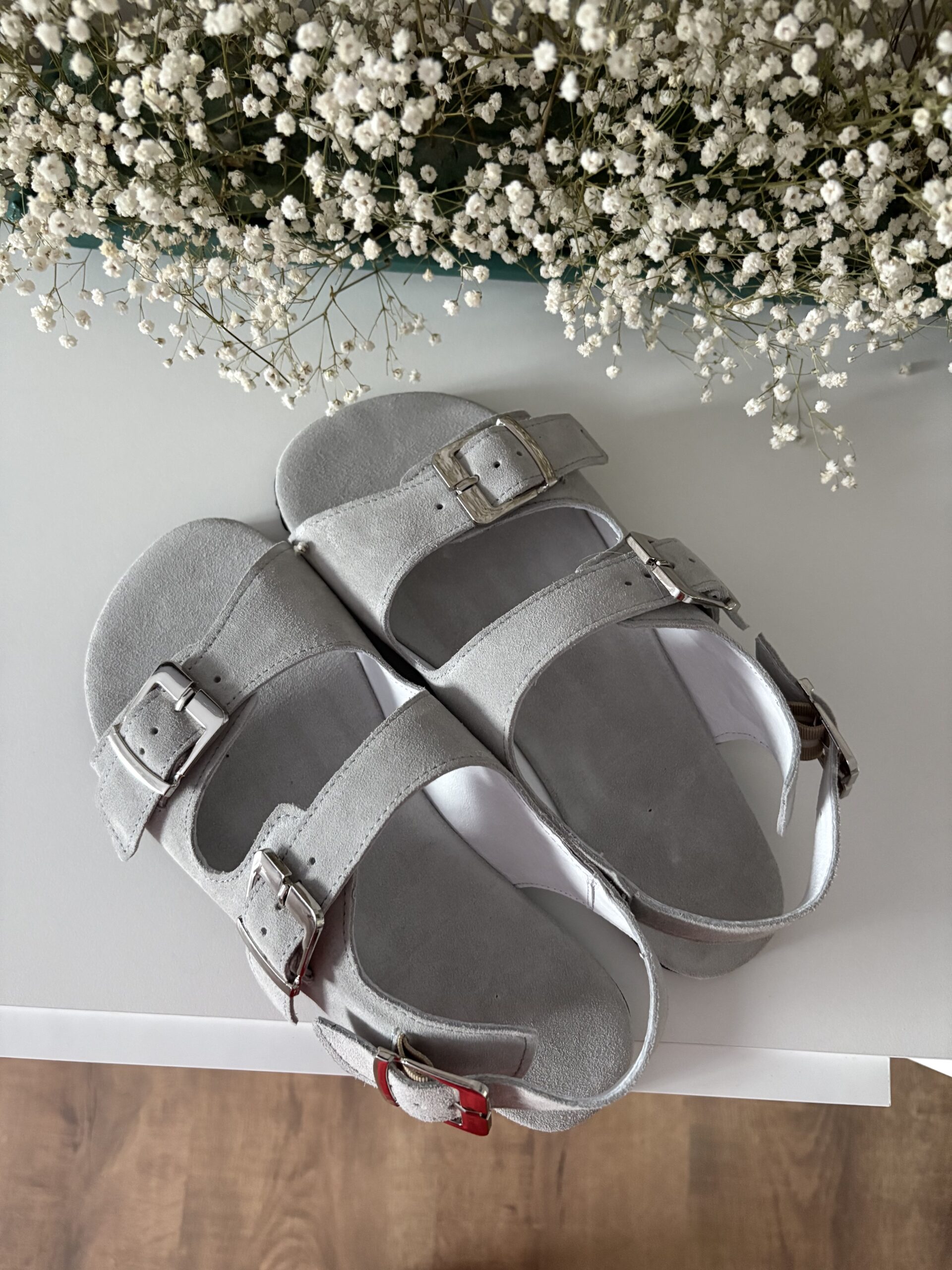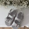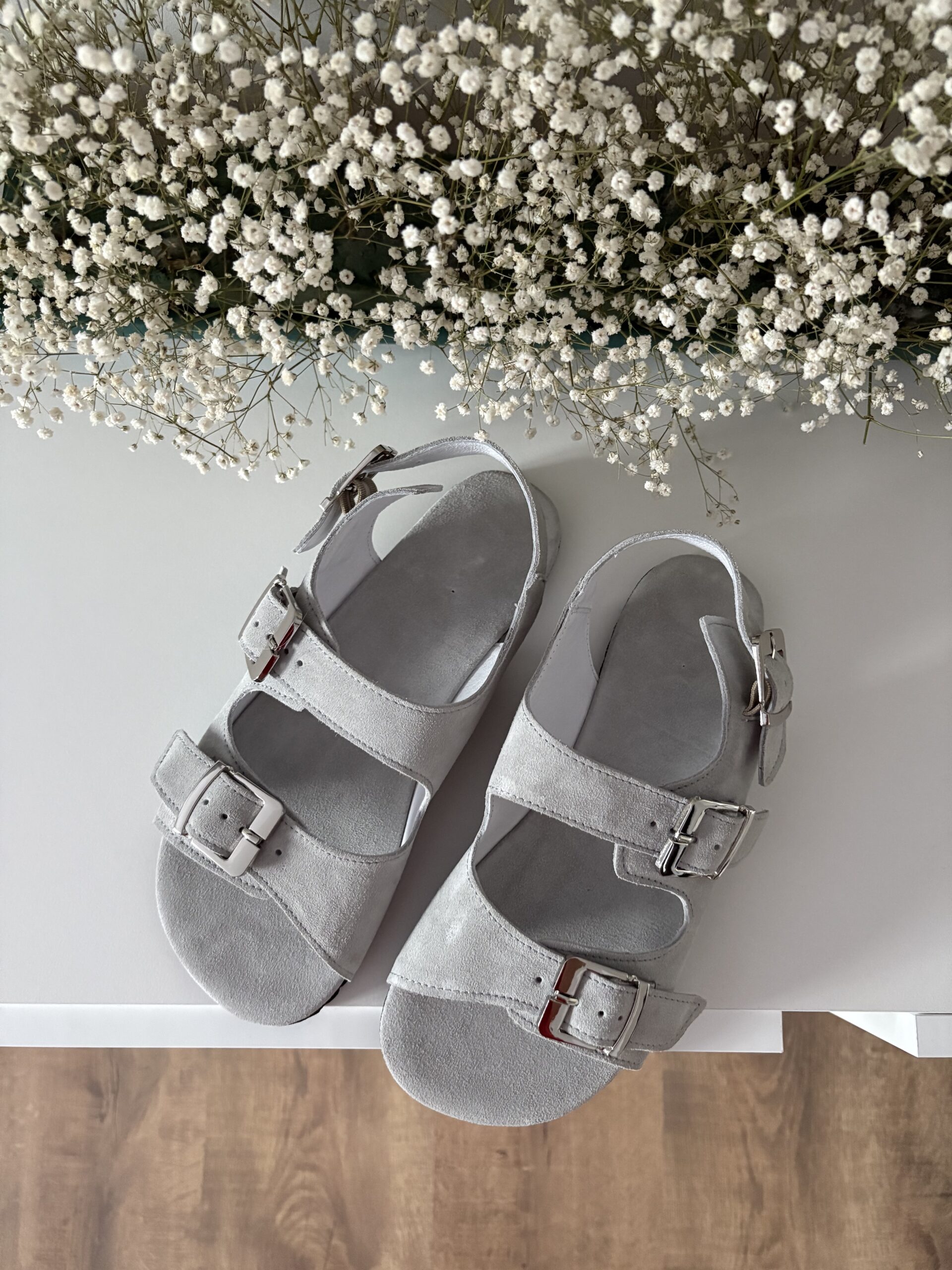 Szary welur nadaje sandałom elegancji i sprawia, że są bardzo uniwersalne.