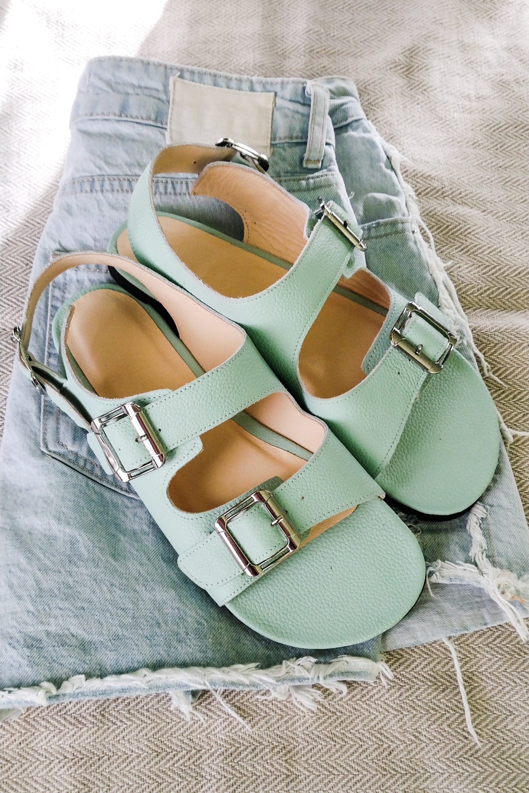 Sandały barefoot damskie Camille – błękitna skóra | APAVO Barefoot